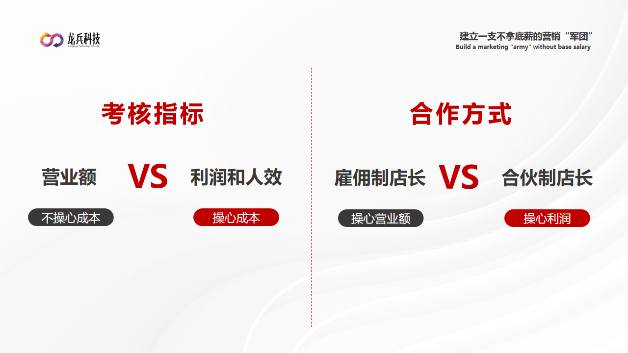 如果想把员工和干部变成“0”底薪的合伙人,一起出钱,一起创业,我们也有相关方案,可以私下了解。